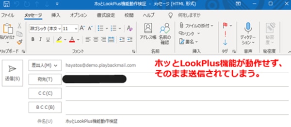 | 原因 | Microsoft 365の仕様により、下書き保存されていないメールについてホッとLookPlusのチェック対象外となるため |